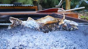 化粧塩をして焼き台へ走り団扇でパタパタと仰ぎます。